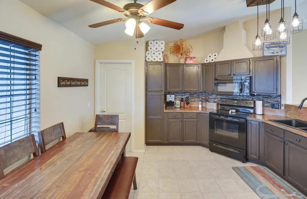 Komplette Küche sowie eine Mikrowelle, eine Kaffee-/Teemaschine und ein Kühlschrank werden in der Villa Lake Havasu Retreat angeboten.